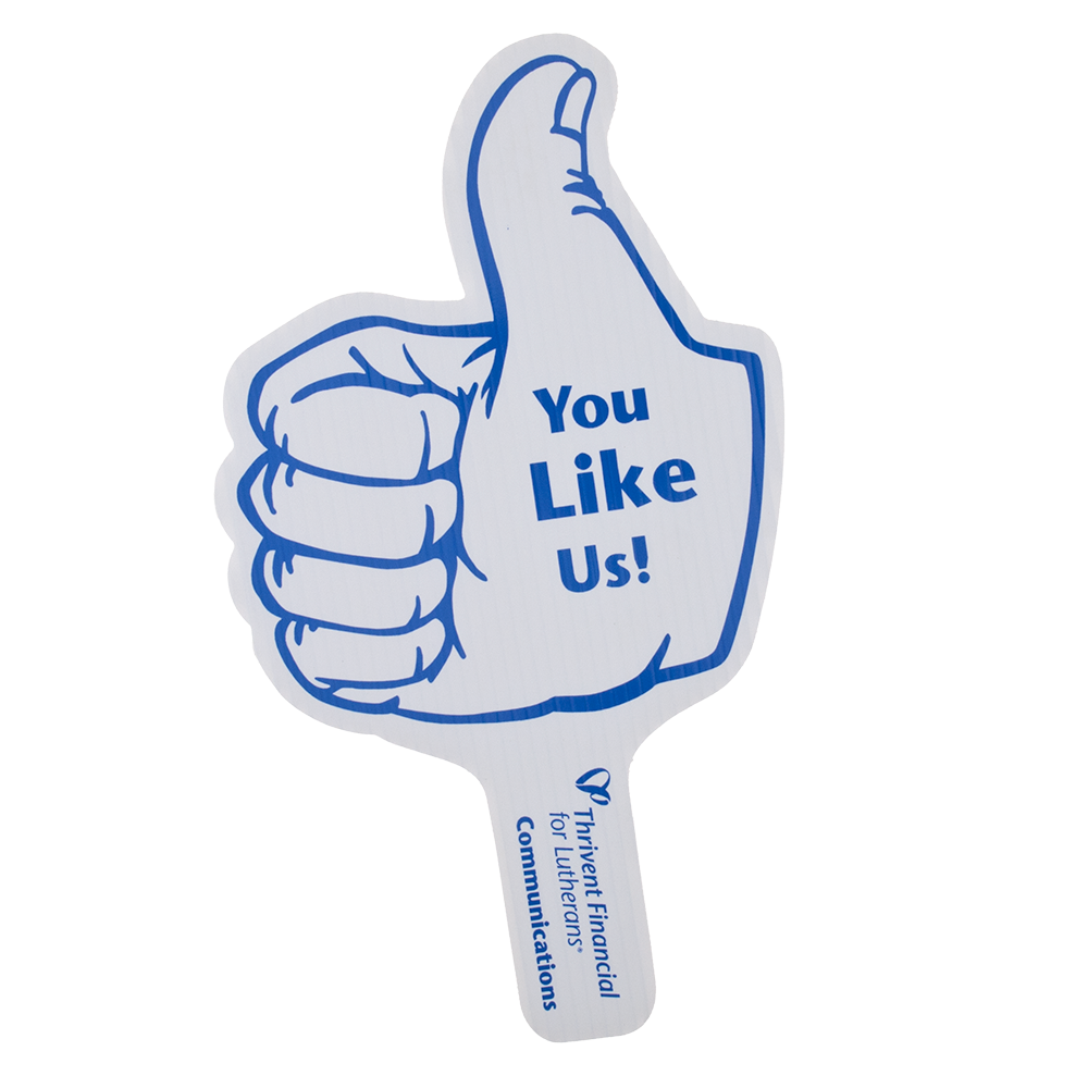 Die Cut from corrugated plastic material. Waterproof and weather resistant imprint. Unique shapes help communicate your message. Approximately 8 1/2" x 11" in size. Optional pom attachment available. Made in the USA.