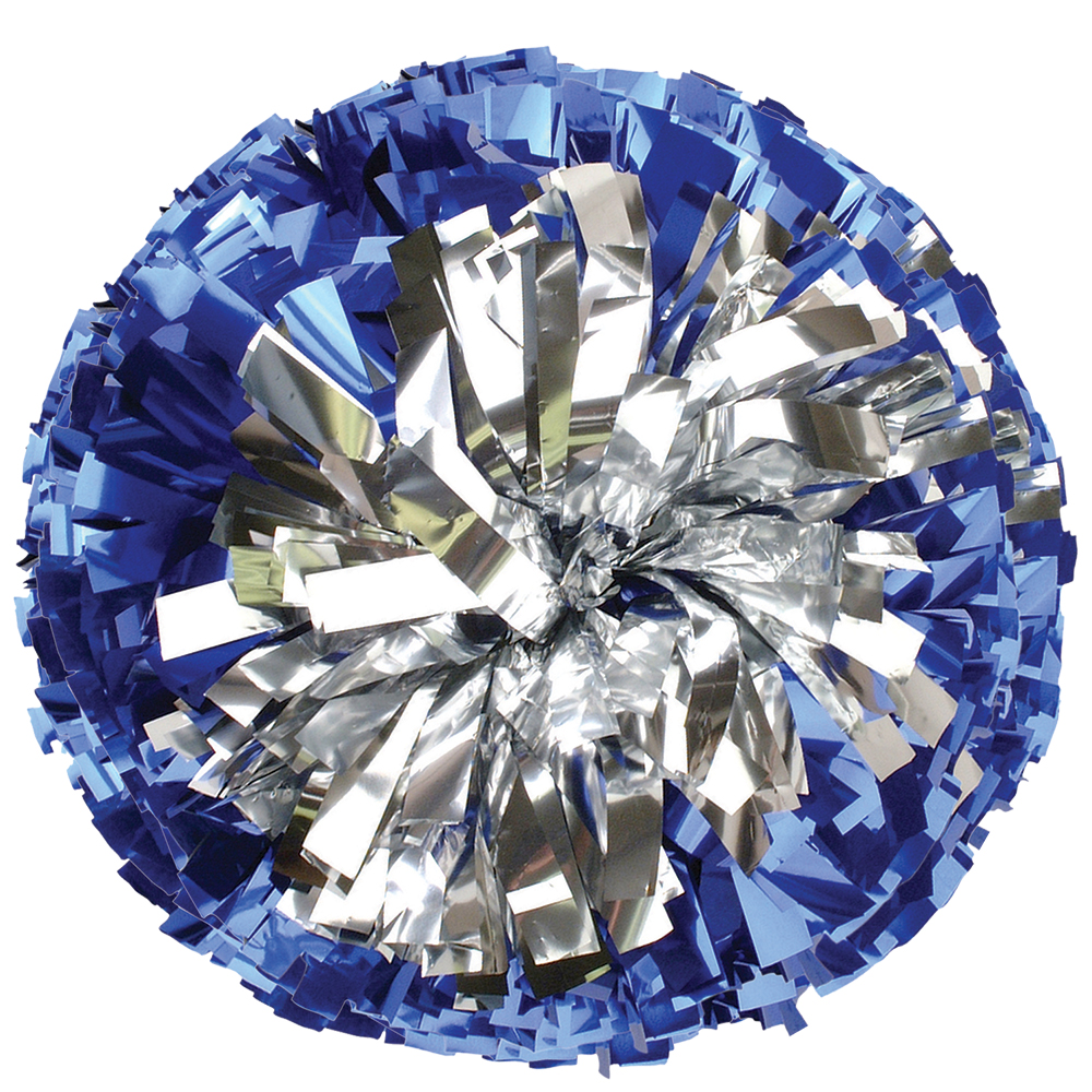 Custom pom pom perfect for any drill team, cheerleader or dance squad. Features 1,024 3/4" wide streamers in one two separate colors - one on the outside and one color in. Your choice of pom handle. Add Glitter or Flash as an option. Metallic poms come pre-fluffed.